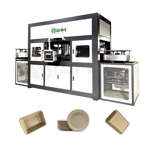 The pulp molding tableware machine from SHM is a fully automatic thermoforming machine designed to produce a wide range of disposable sugarcane bagasse plates, biodegradable plates, and environmentally friendly disposable tableware. Using advanced vacuum mold forming technology, it transforms natural fibers such as sugarcane bagasse, bamboo pulp, or wood pulp into nice compostable plates, disposable plates and bowls for hot food, and even wood looking paper plates with lids.